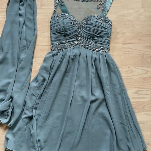 Lang kjole i nydelig grønnfarge. Lappen er fortsatt på.