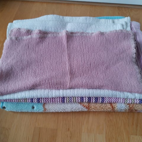 Helseteppe babyteppe med som er god luftig. Ca 70x100. Brukt å vasket godt. Ligget en stund. Dyr å røykfritt. 6 STK. Hvit, lilla og rosa