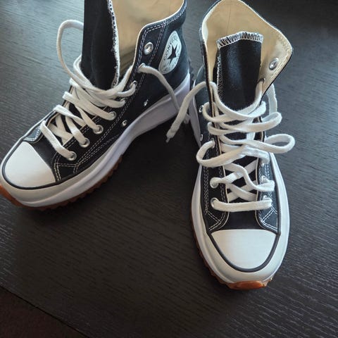 Ikke så mye brukt men brukt til div hagearbeid og skoene er derfor flekkete med maling flekker.