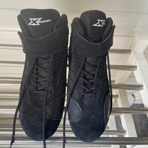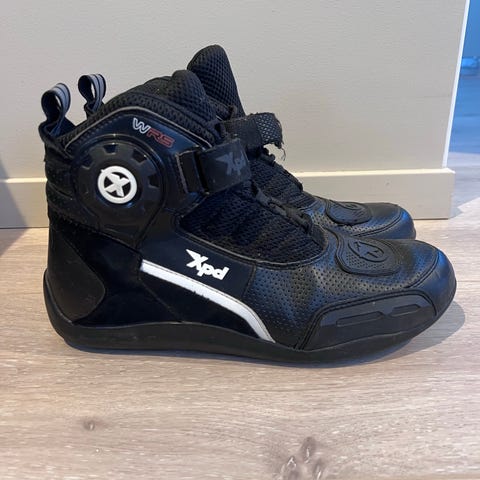 Helt nye XPD Moto motorsykkelsko kjøpt hos Motardinn. Bestilte en størrelse større en jeg vanligvis bruker da motorsykkelsko ofte er litt små, men disse var reelt 43. Kun prøvd på.