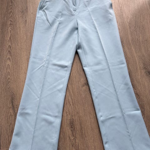 Selger disse dressbuksene med flatterende snitt fra zara. Babyblå farge, str M. Fin modell sim jeg har brukt mye men som dessverre er for liten.