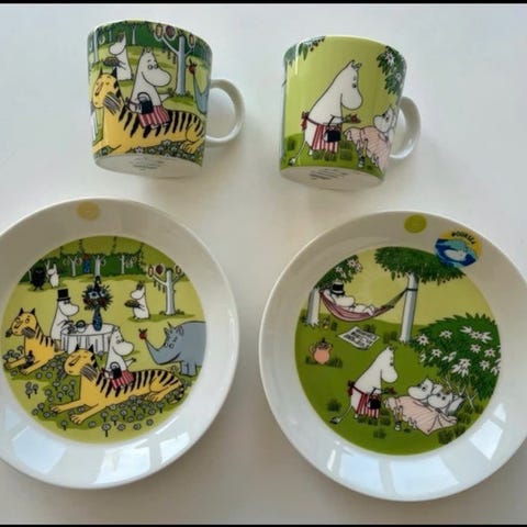 Selger Mymlen mummikopp med kronestempel og etikett i perfekt stand 🩷👑Denne koppen har det klassiske kronestempelet som er populært blant samlere, og som Arabia sluttet med i 2015.