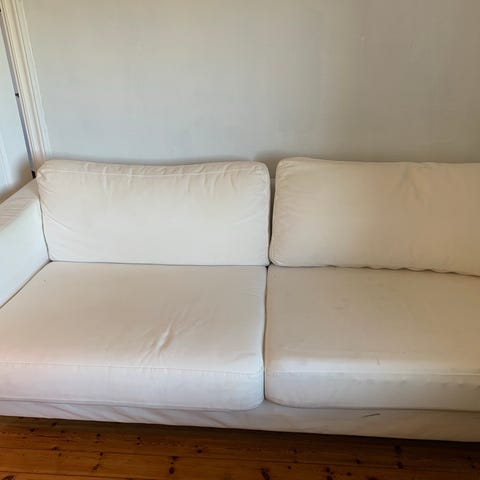 Sofaen er hel og fin. Div. trekk trenger en vask.