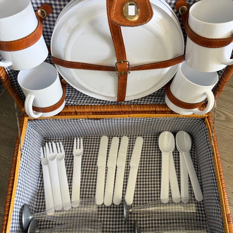 Piknikkurv og piknikksett selges samlet kr. 250,-