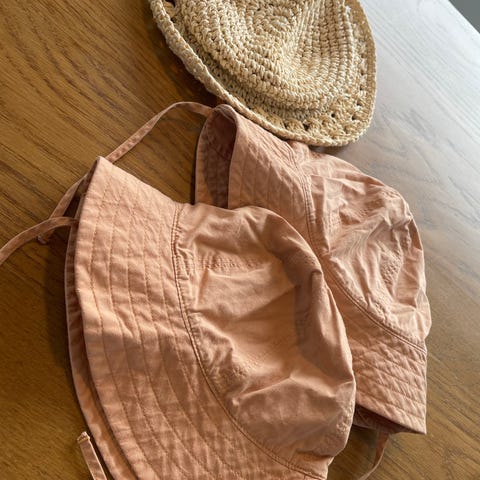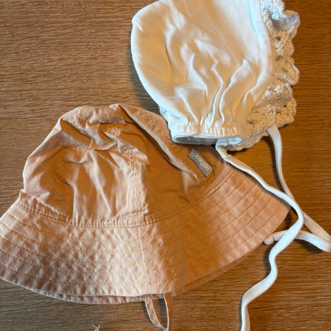 2 lys rosa solhatter i str. 74/80 selges samlet for 100,-kr