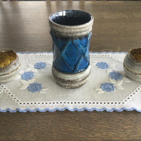 Flott liten vase i keramikk fra 1970-tallet selges for kr 100,-.