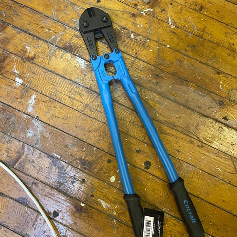 Kraftig boltesaks. LItt smårust, men smurt og fungerer som den skal.