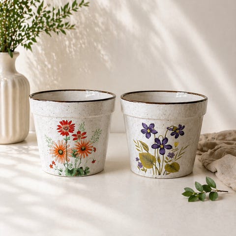 Keramikk potter blomster 2 stk