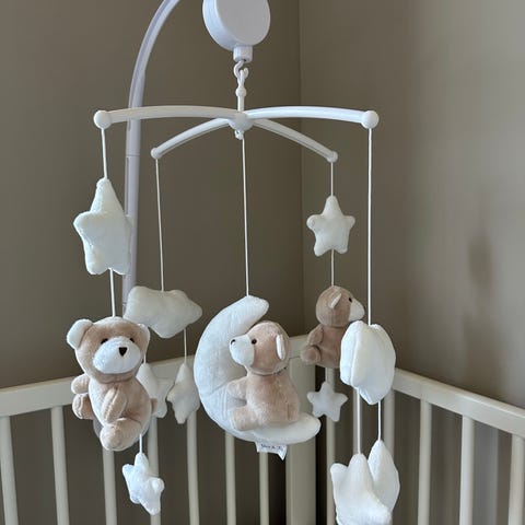 Lyser opp med en dempet stjernehimmel i 15 min. Med lyd, deretter forsvinner lyset sakte, men sikkert mens musikken/lyden fortsetter i 15 min. Til før den også sakte forsvinner. Bamsene går også sakte rundt mens lyset og lyden er på.