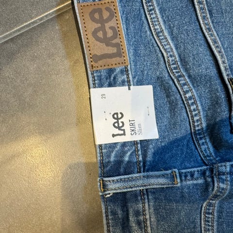 Pent brukt Lee skjørt i lyseblå denim/dongeri. Med stretch. W29, så er str.M.
