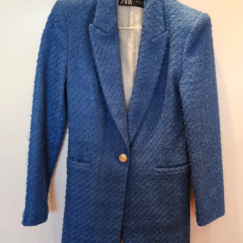 En av de populære modellene i blått med et nydelig fargespill fra Zara. Struktur og knapper med strass. Fremstår som ny.