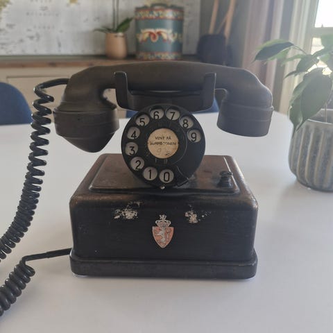 Perfekt som dekorasjon eller for samlere. Telefonen er ikke i bruk i dag, men har stor verdi som nostalgisk og antikk gjenstand. Selges som den er.