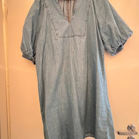 Jeanskjole i mykt stoff. Armer med strikk og lommer. Kan brukes med og uten belte. Myk deilig jeans stoff.