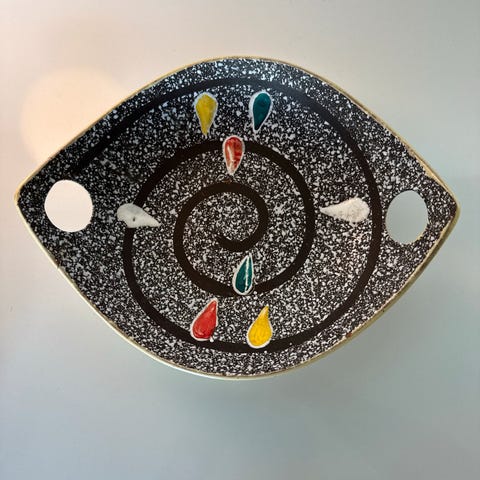 Vintage keramikk, fat lava, 50-talls stil, retro, mid-century modern, tysk keramikk, japansk design, studiokeramikk, dekorfat, boho, MCM, 1950, 1960