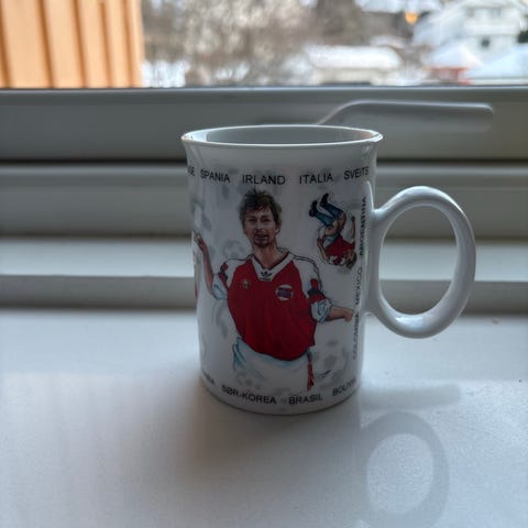Flott krus laget i 2007. Med dekoren Live av Wembley. Diameter 8cm og høyde 9,5cm. Ingen skader.