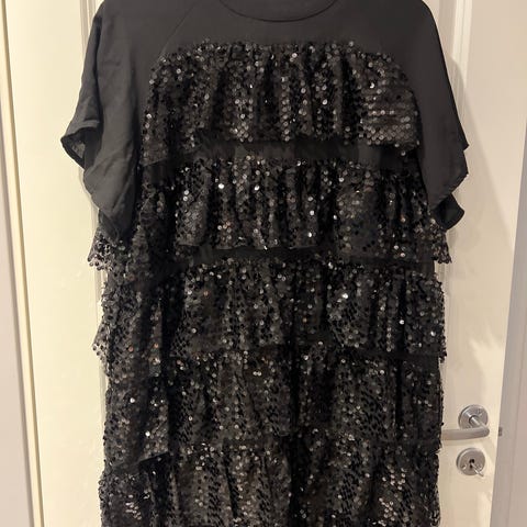 Dette er en vakker paljettkjole., med diskret mønster.