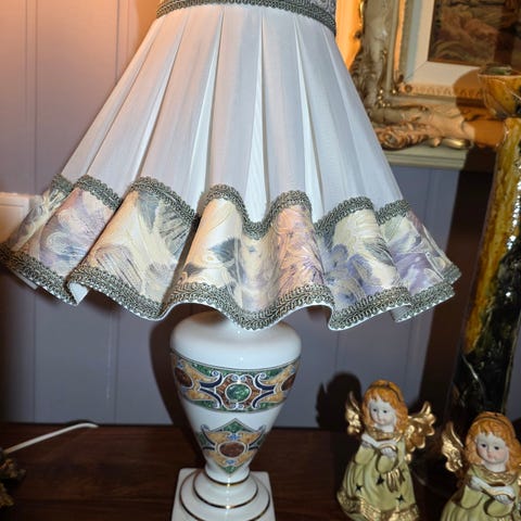 Vintage bordlampe i porselen - lyser fint opp.