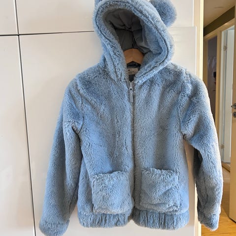 Herlig teddyjakke med ører i lysblå str 146/152 fra h&m selges