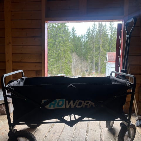 Kraftig bygget trillebår med 2 solide hjul (med luft)og vannfast platt. Kan frakte tunge saker.