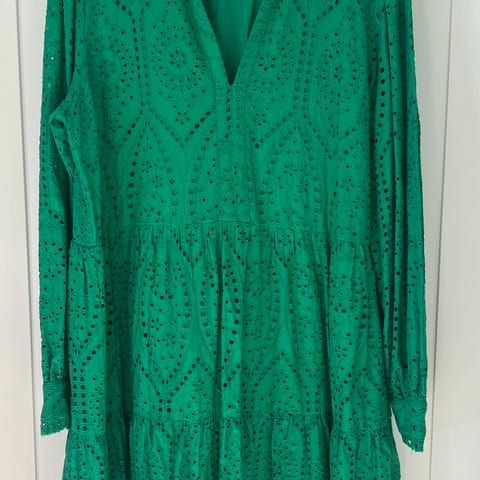 Pent brukt kjole i en flott grønn farge. Størrelsen er M, den er romslig. Denne kjolen har jeg kun brukt ved noen få anledninger. Den kan brukes til selskap, på jobb eller en deilig sommerdag. Kjolen blir lekker med knytting i livet i form av tøybelte eller vanlig belte. Kjolen er lekker både med støvletter, ballerina sko eller pensko.