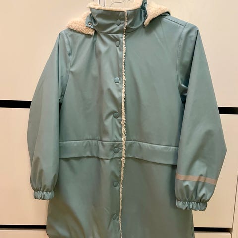 Regnkåpe fra Didriksons str 140. Glidelås og knapper. Store lommer med knapp.