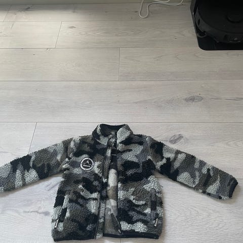 Tykk og varm Teddy fleecejakke med camo mønster. Lengre modell. Lite brukt.nypris 699 kr