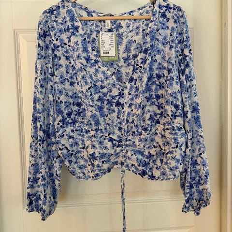 H&M blomstret langermet topp i størrelse XL med flerfarget mønster.