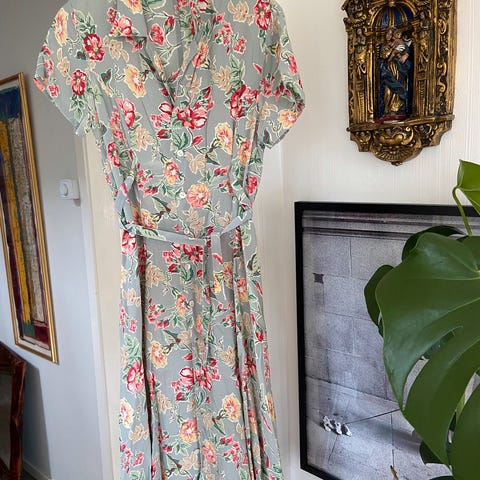 Altså. Hvor skal man begynne med denne skatten av en kjole fra Zara. Helt nydelige blomster i ulike størrelser og farger, deilig passform og knapper foran. En drøm. Dessverre for liten nå.