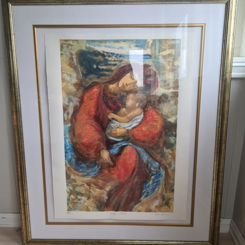 Serigrafiet «Egyptian Blues II» fra 1976 av den engelske kunstneren Peter Matthews (født 1942). Arkformat: Høyde 59 cm, bredde 59 cm. Motivformat: Høyde 59 cm, bredde 49 cm. Nummerert og signert.