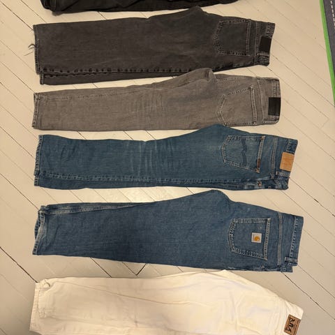 6 bukser, pent brukt i str 152, selges samlet
