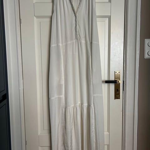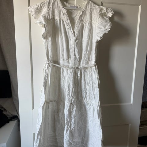 Nydelig kjole fra Vince, kun brukt et par ganger. Ikke gjennomsiktig, foret i skjørtet er beige. 62 % viskose, 24 % lyocell, 14 % nylon. For: 100 % polyester.