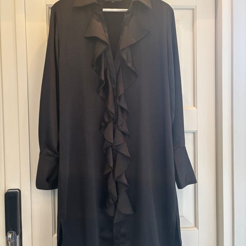Dejlig og luftig satin kjole med ærmeregulering. Kjolen går ned til over knæene.