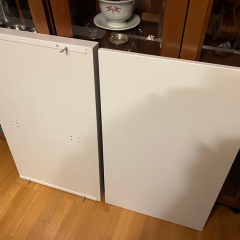 Skinner til skuff (gammel type) og hengsler til dører følger med.