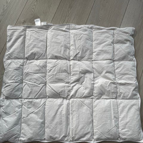 Trekk til barnets første pute som ofte brukes i vogn, vugge og sprinkelseng. Begge putevarene er hvite. Den ene har blonder på 3 sider og et lite hvitt broderi. Det andre er retro med lyseblått rådyrmotiv.