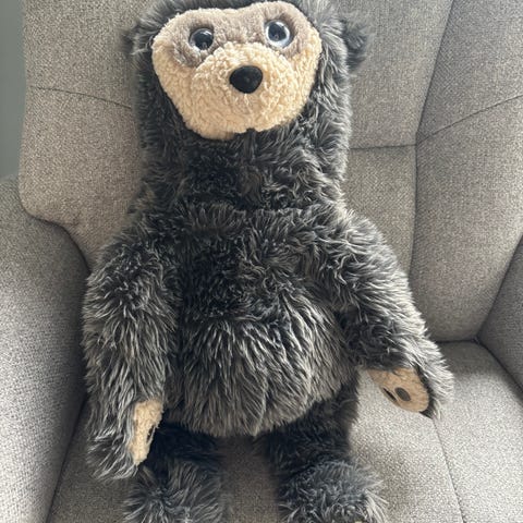 Brillebjørn bamse stor og liten. Begge er pent brukt. Den store har en gang vært mistet på gulvet og har fått en liten flekk på øyet.