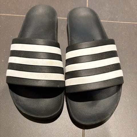 Pent brukt adidas slippers i størrelse 39, vil si den passer bedre 38