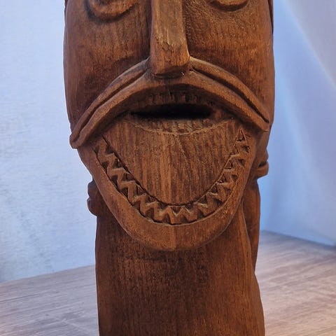 Dekorativ Viking nøtteknekker i tre vurderes solgt.