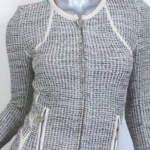 Nydelig tweedjakke, croods med fringes.