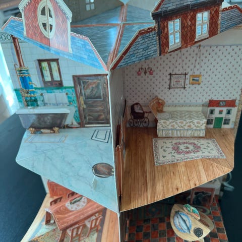 Tredimensjonale pop-up bøker som åpnes opp til dukkehus.