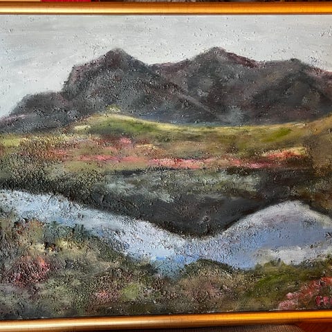 Litografi, " Utkant 75" av Karl Erik Harr. 49/100, motiv størrelse 46 x 62 cm, utvendig ramme 69 x 87 cm.