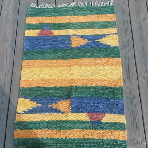 Håndvevd teppe/ kan även ha den som duk pga liten størelse gjord i Värmlans säby i Sverige.