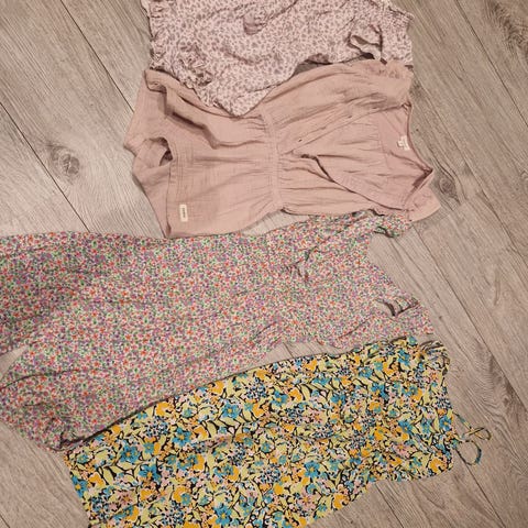 Pompdelux kjole str 134 og rosa kjole/tunika str ca 116. Stor på str. 150kr
