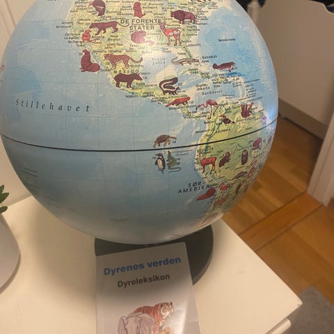 Oppblåsbar globus med bilde av dyr fra ulike kontinenter til barnerommet