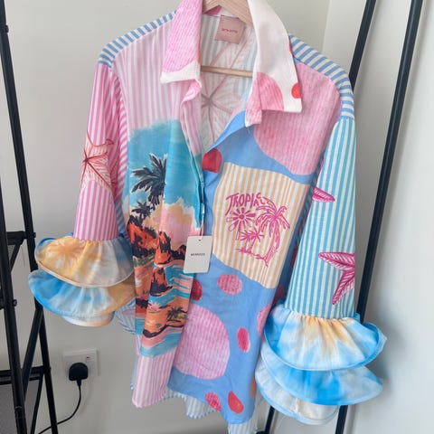 Knallrosa sommerbluse i str S (M) kjøpt i Italia i fjor for ca 400 kr, aldri brukt. 100 % bomull