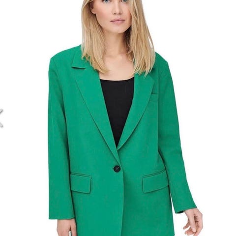 Selger denne kule blazeren med skulderputer. Frisk farge og veldig fin på, men brukes for lite. Er en designerjakke, så god pris for noe som er så pent brukt.