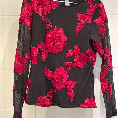 Svart bluse med røde roser