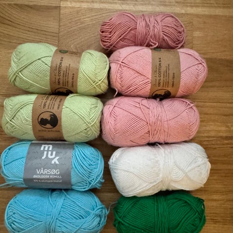 Garnpakke med diverse garn selges.