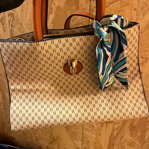 Turkis pen veske kjøpt i Riga , mener det er skinn men litt usikker. Lommebok følger med.
