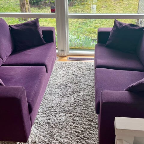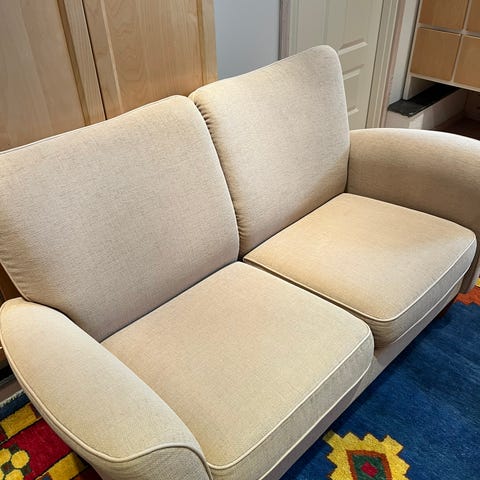 Mål 2 seter; d-83 x b-145 x h-73- sittehøyde 45 cm. Må hentes.