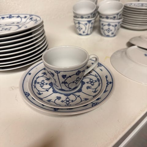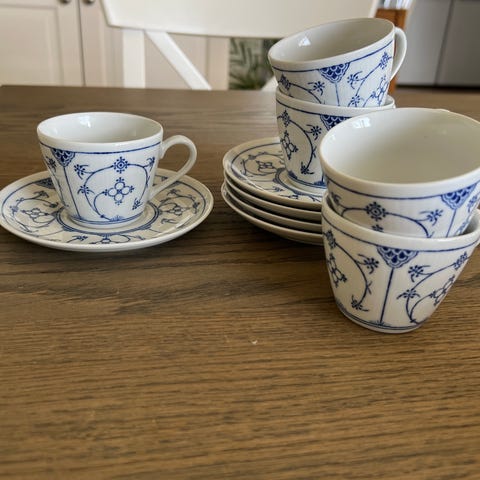 2 stk froksost servise og 5 stk kaffekopp/asjett i merke Jaeger